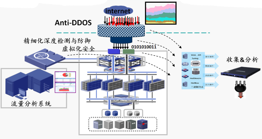 (1)在出口部署防火墻、IPS,流量清洗,流量分析系統
