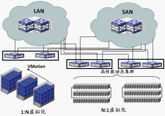 (1)實現服務器虛擬化計算,部署VMWare、Hyper-V等虛擬化平臺